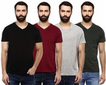 Aventura Outfitters Premium Pure Cotton V-Neck Regular Fit Tshirts for Men - (Pack of 4) (AO35-4XL_Black, Grey Melange, Rio Red & Mehndi Green)