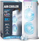 Aluan Portable Double Ended Mist Spray Fan for Summer Room Cooling, USB Rechargeable Mini AC Air Cooler Misting Fans for Home,Table | Electric Cooler With 280ml Water, 7colors Led Remote (White)