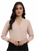 FITHUB Women's Solid V-Neck Regular Fit Casual Top(Rose Gold)