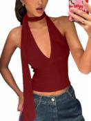 TIVANTE Solid Halter Neck Sleeveless Crop Top with Scarf for Women (in, Alpha, S, Maroon)
