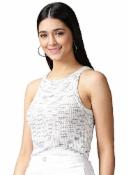 FableStreet Polyester Women's Boat Neck Regular Fit Stylish Top - White