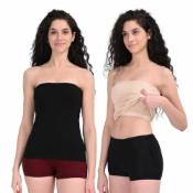 Adira | Women Tube Top | Off-Shoulder Design | Built-in Tube Bra | Anti-Slip Silicone Elastic | Body-Hugging Fit | Full Coverage | Soft Cotton Blend | Pack of 2 | Skin,Black | M