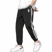 Mack Jonney Men's Mid Rise Black Striped Track Pants - Loose Fit, Summer, Size L