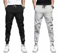 Septem Men's Cotton Blend Track Pants for Active Lifestyles, Stylish Design Comfortable and Versatile Active Wear Combo Pack of 2 (_Black-Steel Grey_M_)|93