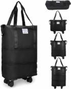 Wazdorf Travel Duffle Bag with Wheels- Foldable, Expandable, Extendable Trolley with 4 Detachable 360° Wheel, Waterproof Luggage for Men & Women, Convertible Carry-On with Strap & Carry Option (Black)