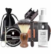 UrbanMooch Premium 6-In-1 Shaving Kit For Men | Gifts for Boyfriend, Husband | Grey Metal Precision Safety Razor, Wooden Shaving Brush, Shaving Cream, After Shave Lotion, Scissor & Premuim Shaving Kit Bag for Men
