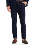 The Indian Garage Co Men Slim Fit Solid Mid-Rise Stretchable Mid Rise Chinos Teal Blue, 34