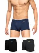 XYXX Men's Underwear Illuminati IntelliSoft Antimicrobial Micro Modal Trunk Pack of 2 (Black Iris & Tango Red;Black & Steel Grey; L)