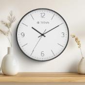 Titan Essence Classic Analog Wall Clock - Black & White Minimal, 30 W x 30 H cm, Plastic