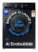 Samsung 12 kg (Wash) / 7 kg (Dry), 5 Star, AI EcoBubble, AI Energy Mode, Air Wash, Super Speed, Hygiene Steam, Wi-Fi, Digital Inverter, Fully-Automatic Front Load Washer Dryer (WD12FG5B34BBTL, Black)