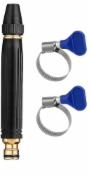 Crasts Heavy Duty High-Pressure Water Spray Nozzle for Garden Hose with 2 Stainless Steel Clamps – Adjustable Jet Sprayer for Car Wash, Garden Watering & Outdoor Cleaning (Black & Gold)