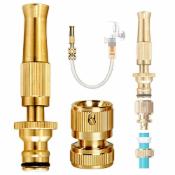 Kohree Brass Water Spray Nozzle for 1/2" Hose Pipe - Adjustable Pressure Booster Gun for Car Wash & Gardening, High Pressure Jet Sprayer Washer (Brass Nozzle)