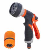 8 in 1 Heavy Duty Hose Nozzle Water Spray Gun High Pressure for Gardening, Flower, Plants, Lawn, Multi Functional Cleaning, Showering Pet & Wash Cars, Pack of 1, ABS plastic (8 Pattern Orange Gun)