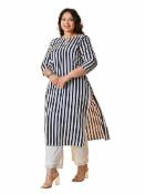 PrettyPlus by Desinoor.com Plus Size Navy White Stripped Kurta