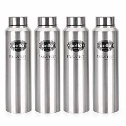 CELLO Crysta Stainless Steel Bottle | Tough & Trendy | Lid is Sealed by a Silicone Ring | Best Usage: Office/School/College/Gym/Picnic/Home/Fridge | 1000ml | Silver, Set of 4