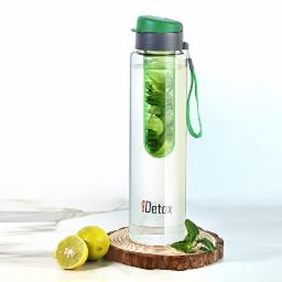 CELLO Detox Fruit & Tea Infuser Glass Water Bottle| Wide Cap Sealed With Flip Top | Leak Proof & Durable | Ideal for Gym, Office, Travel | 750ml, Green