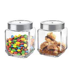 CELLO Qube Fresh Glass Storage Jar | Container with Air tight Silver Metal Lid | Multipurpose Jar | For Storage of Food, Pulses, Spice, Cereals, Cookies, Dry Food | Set of 2, 580ml, Clear