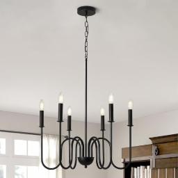 Chandni Décor Modern Chandelier,6 Light Farmhouse Chandlier for Dining Room Kitchen Living Room Light Fixtures,Candle Hanging Chandelier Lamp for Foyer Entryway (Black)