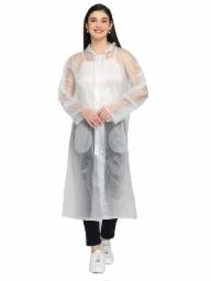 Citizen Raincoat For Women with Inbuilt Hood & Matching Carry Pouch | PVC Single Layered Longcoat | Durable & Lightweight Ladies Rainsuit | Transparent, 2XL