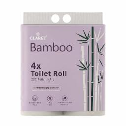 Claret Bamboo 3-Ply Toilet Roll (10 x 10 cm) | 200 Pulls Eco-Friendly | 4 Toilet Rolls in 1 Pack | OBA Free | Natural Bamboo Pulp (Pack Of 1 (4 Rolls))