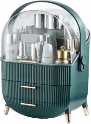 Clefairy Plastic Makeup Organiser Storage Box - Cosmetics, Skincare And Beauty Case With Clear Lid Display And 2 Drawers - Bathroom Counter - Vanity - Green
