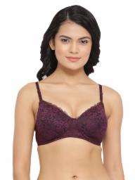Clovia Women's Lightly Padded Non-Wired Multiway Bra in Dark Purple - Lace (BR1879A15_Purple_34B)