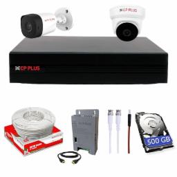 CP PLUS Full HD 4 Channel DVR with 2.4 MP 1 Outdoor and 1 Indoor Cameras [Built-in Audio MIC + Motion Detection] + 500 GB HDD + 4 Ch SMPS + CCTV Cable, USEWELL HDMI+BNC/DC Set, White