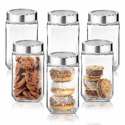 Croco Square Shape Transparent Glass Jars & Containers With Airtight Steel Lid For Kitchen Pantry,Snacks,Masala,Pickles,Dry Fruits,Coffee Beans Storage With See Through Steel Lid (1000Ml) (Set Of 6)