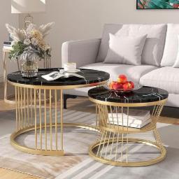 CROWN ART SHOPPEE The Round Coffee Table and The Stacking Tea Table with a Gold Metal Frame are Two Versatile Modern Center Tables That Look Great in Living Rooms Black Gold