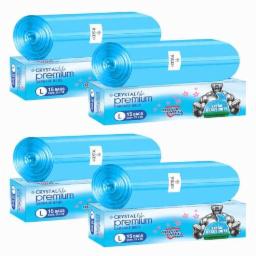 Crystal Premium Garbage Bags Blue (Jasmine Fragrance) Scented - 24 x 32|Large|60 count | 15 Pcs/Roll (Pack of 4)