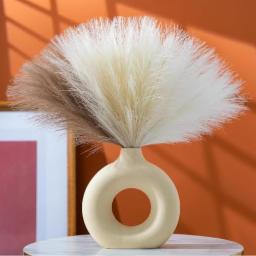 CURATED CART 3 Pcs Faux Pampas Grass - 17 inch Artificial Fluffy Flowers for Home Decoration, Wedding & Office Decor | Dried Plants, Leaves & Grass Arrangement (Without Vase) - Beige, Brown, White