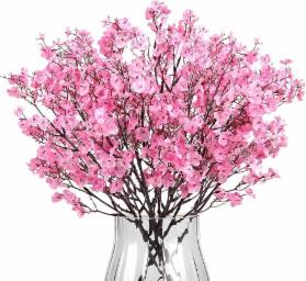 CURATED CART Fabric Flowers for Vases for Home Decor - Artificial Baby Breath Gypsophila Flower Sticks,5 Stems 1 Bunch,Decorative Faux Flowers for Vases,Living Room,Wedding,Christmas - Pink (No Vase)