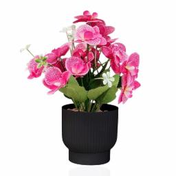 CURATED CART Orchid Artificial Flowers - Faux Orchid Bouquet in Decorative Black Pot | Pink Real Touch Petals for Home, Office, Kitchen, Living Room, Wedding Tabletop Decor