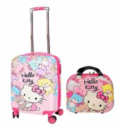 D Paradise Kids Hello Kitty Cartoon Print Combo of 20 Inches Travel Suitcase Trolley Bag Luggage and 13 Inches Mini Suitcase Vanity Bag for Girl's and Boy's