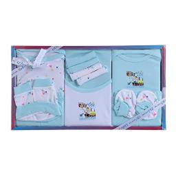 *13pcs new-born gift sets for babies are available in dazzling colours & designs. sets includes: 1 crewneck bodysuit with crotch snaps closure, 1 t-shirt, pants, 1 bib, a pair of booties and 1 matching cap, 4 wash cloths, shorts, mittens and a towel