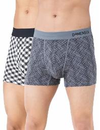 DAMENSCH Deo-Soft Men's Odour-Cancelling Supima-Modal Soft Trunks- Pack of 2- Grey Grid, Black Check & Mate- Large