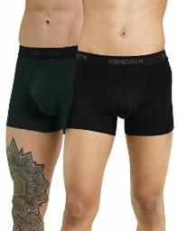 DAMENSCH Mens Premium Cotton Solid Trunks ReFRSH Single of Peppermint Powered-Pack of 2-Jet Black,Pine Green-Medium