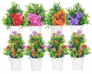 Dekorly Plastic Wild Artificial Flower Plants With Cute Hexa Pot|Faux Flower Plant For Home Office Decor|Tabletop And Desk Decoration|Artificial Flower For Balcony Indoor Decor|Pack Of 8 (Multi-C)