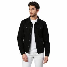 Dennis Lingo Men's Regular Fit Long Sleeve Button Down Panel Denim Jacket, Lightweight Trucker Jacket (Black, M)