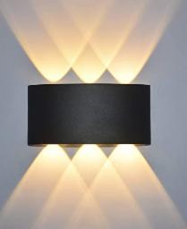 Desidiya 6 Watts (Pack of 1) 6 Ray Oval Up-Down Outdoor LED Outdoor Waterproof IP65 Exterior Wall Step Light Fixture Waterproof Lamp Warm White, Black Body 6 Way Metal