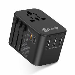Destinio Universal Travel Adapter with Type C, 6 in 1 Fast Charging International Travel Adapter; 1 PD, 1 Type C Port and 3 USB; All in One Charger for US, UK, Europe, (Black, 1 Unit)