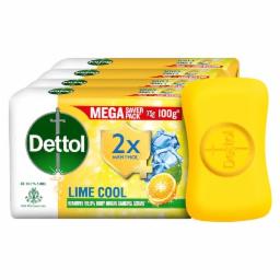 Dettol Lime Cool Bathing Soap Bar with 2x Menthol (400gm) | Long Lasting Freshness, 100gm Pack of 4