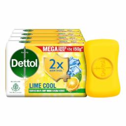 Get Dettol Lime Cool Bathing Soap Bar with 2x Menthol (600g)- Pack of 4 worth Rs.210 @ Rs.196 only.