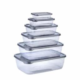 Dialust Rectangular Plastic Food Storage Container with Air Tight Lid Kitchen Container Meat Box Fridge and Freezer Storage Boxes Bowl - 225ml, 325ml, 650ml, 1250ml, 2200ml, 3500ml, 6 Pcs, Clear