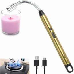 DOCOSS - Rechargeable Electric Gas Lighter Kitchen Lighter Chargeable USB Arc for Candle Flexible Neck for Gas,diyas,agarbatti,Candle (Golden)