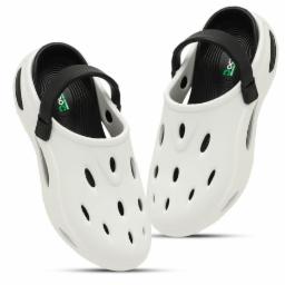 DOCTOR HEALTH SUPER SOFT Stylish and Comfortable Anti Skid Men Clogs with Lightweight Cushioned Footwear | Adjustable Strap Clogs for Men | Everyday Use Mules for Men Clogs White-Black