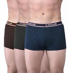 Dollar Bigboss Cotton Men's Assorted Pack of 3 Trunk (8902889486758_Bb-Mini-Biscuit-Mrn-Navy-3Pcs-90), Large