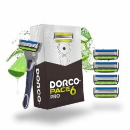 Dorco Pace 6 Pro 3D Motion Shaving Razor for Men | 1 Handle + 4 Cartridge Set | Lubrication Strip with Chamomile, Olive Oil & Allantoin | Long-Lasting | Precision Blades