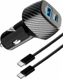 DR VAKU® 53W Car Charger Dual Port Output Fast Charging Type C PD 33W + 20W QC 3.0 USB for iPhone 15/14/13 All Series & Android Phones with 1 Meter Nylon Braided Type C Data Cable (Charger+Cable)