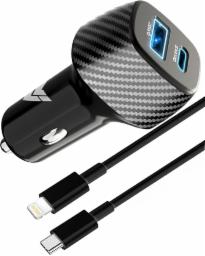 DR VAKU® 53W Car Charger Dual Port Output Fast Charging Type C PD 33W + 20W QC 3.0 USB for iPhone 15/14/13 All Series & Android Phones with 1 Meter Type C to Lightning Data Cable (Charger+Cable)